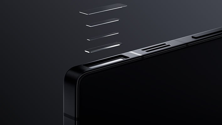 The new model features an AMOLED display with bezels reduced to 1.25 mm and an under-display 16 MP front camera. The smartphone also features a distinctive design with translucent elements, an aluminum frame, and slight curves on the sides. The device weighs 207 grams and is 7.85 mm thick.